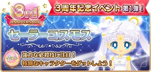 アプリ セーラームーン 3周年 セーラーコスモスがもらえるイベント開催中 Appbank